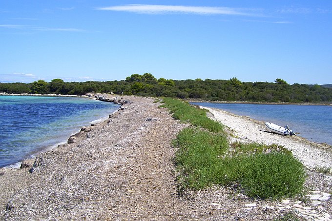 La seconda passeggiata da non perdere è quella di Veli Rat, dal faro: scendendo sulla scogliere e sulla spiaggia rocciosa è possibile seguire un percorso di circa 3 km lungomare, raggiungendo dapprima il punto dove è si vedono i resti della nave affondata nelle acque di fronte al Veli Rat – il relitto viene corroso inesorabilmente dal mare, si vedono pezzi di metallo a pelo d’acqua e alcune parti sono state portate a riva dalle correnti che in questo tratto sono imprevedibili – ma proseguendo si raggiunge una stretta lingua di ciottoli e rocce (Uvala Most) che divide il mare aperto dalla bellissima baia Pantera, molto simile a laguna sabbiosa, con acqua turchesi dove nuotare al riparo delle correnti…